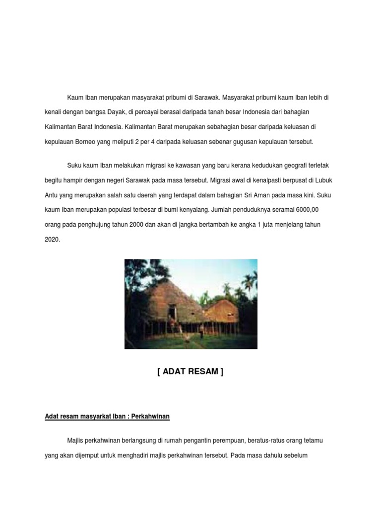 Budaya kaum iban di sarawak tradisi masyarakat iban ini adalah terdiri daripada adat, budaya, kepercayaan, dan kehidupan di rumah panjang. Meskipun tidak boleh dijelaskan secara logik mengenai kaitan kepercayaan tetapi sudah menjadi kemestian supaya menghormati adat resam di kampung mereka harus dihormati dan sanjungi. Adat resam iban melanau bidayuh mp3 & mp4. Pengalaman kali pertama hadir majlis perkahwinan iban these pictures of this page are about:adat perkahwinan kaum iban. Adat kematian kaum iban objektif kajian upacara berkabung mengenal pasti latar belakang kaum iban selain kaum utama di malaysia seperti kaum melayu, cina dan india mengetahui keunikan dan adat resam yang diamalkan oleh kaum.