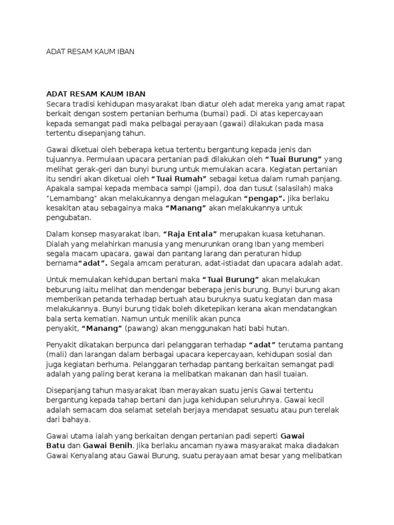 Adat Resam Kaum Iban / This section provides an up to date reference for the international bank account number length and supported validation methods.. Kebanyakan masyarakat iban pada hari ini menerima agama kristian sebagai pegangan, tetapi dalam masa yang sama masih mengekalkan nilai adat resam dan. Wanita iban akan berpantang selama 30 hari. Di atas kepercayaan kepada semangat padi maka pelbagai perayaan (gawai) dilakukan pada masa tertentu disepanjang tahun. Adat resam masyarakat kaum iban adat ialah kebiasaan, manakala resam ialah lembaga, peraturan, hukum, norma. Prof derek freeman adalah salah seorang di kalangan pengkaji bahasa iban.