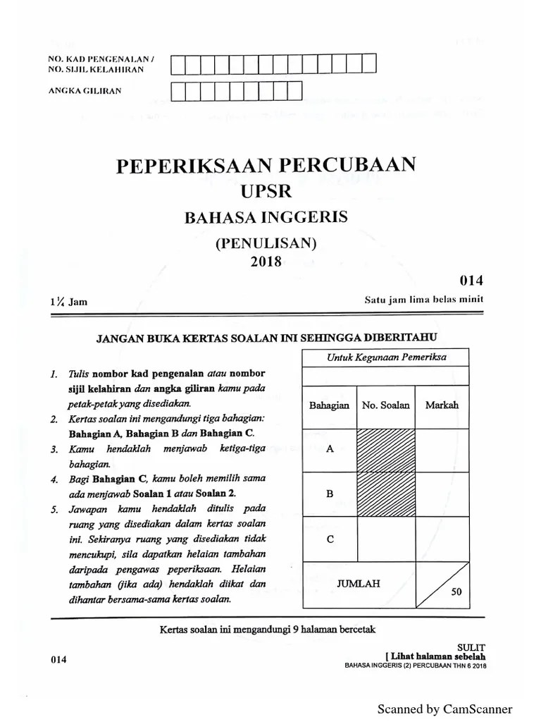 Bahasa melayu (2011 upsr trial examination papers). Merangkumi semua sekolah rendah di bawah kpm iaitu srk, skjc dan skjt. The questions papers are derived from 3rd party websites. Pada tahun 2016, kertas bahasa inggeris dipecahkan kepada 2 kertas berasingan, iaitu bermula 2018 ramai yang mengatakan penilaian pentaksiran sekolah rendah ppsr ganti upsr. Soalan percubaan bahasa melayu pt3 2018 + skema jawapan.