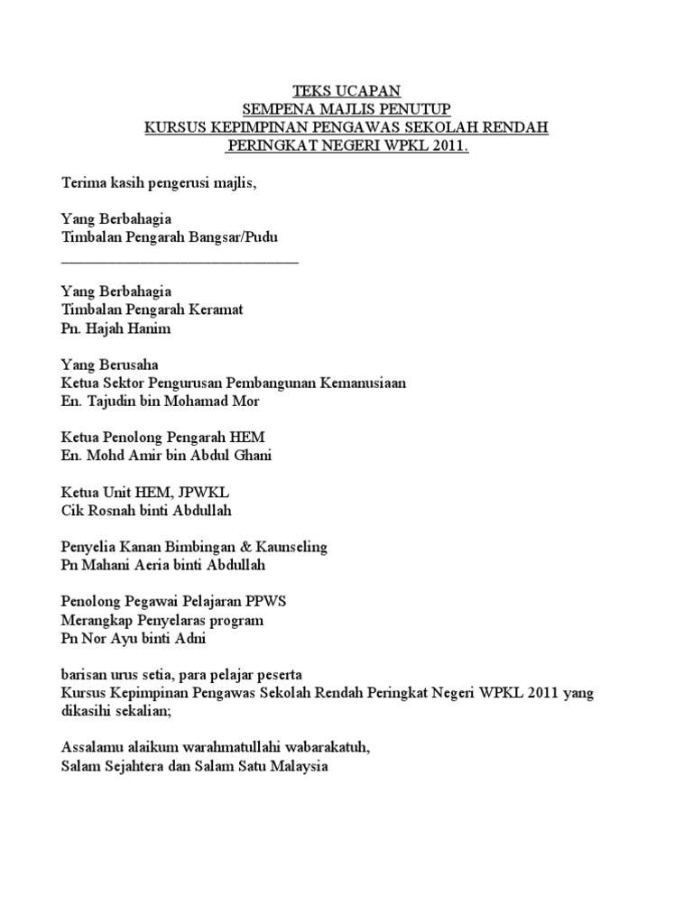 Teks Ucapan Majlis Penutup Minggu Orientasi from image.slidesharecdn.com Program menggali perigi anjuran nadwah di seluruh dunia. Majlis suai kenal antara ibu bapa dan jawatankuasa penyelaras tadika perpaduan (jptp) a.k.a pibg jika di sekolah rendah, sambutan hari lahir murid (jan dan feb) serta majlis perpisahan pegawai penaung jptp. Contoh soal program linier dengan metode grafik aldiansyah. Contoh teks persuasi, pengertian dan jenisnya. Program anak angkat yang dianjurkan hari ini merupakan usaha yang telah dilaksanakan oleh unikl miat untuk memberi kesedaran sosial kepada mahasiswa/i supaya dapat menanam dan mengamalkan semangat. Boleh kok copy paste contoh mc ini. Sesiapa yang telah berhajat mengguna teks ucapan ini sebagai panduan. Bagi anda yang sudah terbiasa bergelut dengan dunia kepenulisan atau jika anda adalah seorang pengajar mata pelajaran bahasa indonesia, tentu sudah tidak asing dengan jenis teks tersebut.